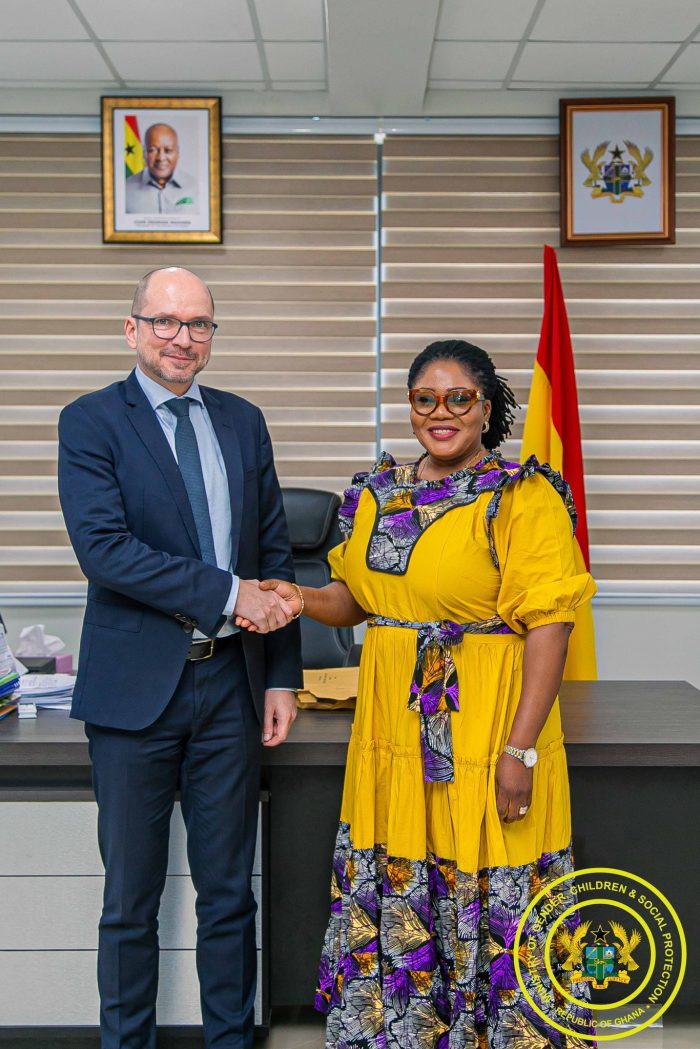The Austrian Ambassador to Ghana, H.E. Jürgen Heissel, has paid a working visit to the Minister for Gender, Children and Social Protection, Hon. Dr. Agnes Naa Momo Lartey, to discuss potential areas of collaboration and knowledge exchange in advancing gender equality, social protection, and inclusive development.