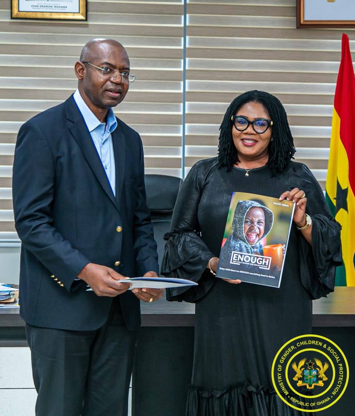 The Minister for Gender, Children and Social Protection, Hon. Dr. Agnes Naa Momo Lartey, has received a delegation from World Vision Ghana, led by Mr. Samuel Norgah, Director of the African Union Liaison Office, to discuss strategic areas of collaboration.
