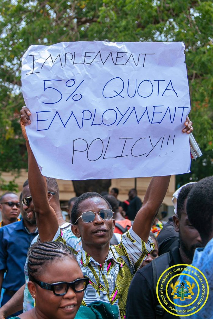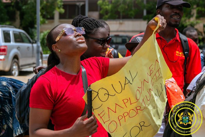 The Minister for Gender, Children and Social Protection, Hon. Dr. Agnes Naa Momo Lartey has engaged with a group of unemployed persons with disabilities who visited the Ministry to demand employment opportunities.