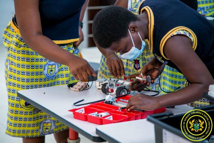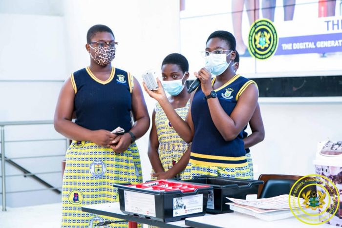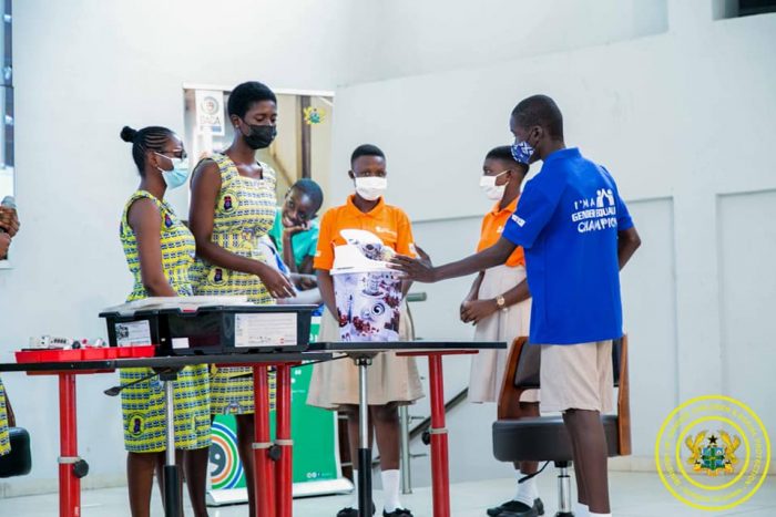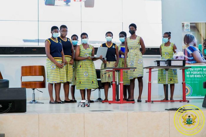 As part of the celebration, the Mamfe Methodist Girls High School (MEGHIS) in the Eastern Region demonstrated some of their inventions which included a ‘Smart Bin’ equipped with a sensor that automatically detects the need to drop trash and a ‘Coding Robot’ that is operated by applying a specific code.