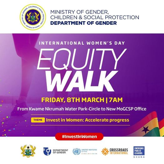 The Ministry of Gender, Children and Social Protection (MoGCSP), in collaboration with the Department of Gender, supported by the United Nations in Ghana, Crossroads International, and Emerging Public Leaders Ghana, has celebrated the 2024 International Women’s Day with a National Equity Walk.